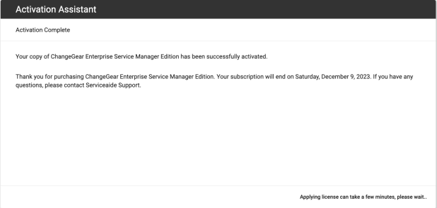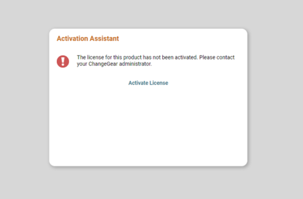 Once the ChangeGear installation is complete, opening the ChangeGear Web Application via the windows start menu will display the following screen from which license activation process begins.