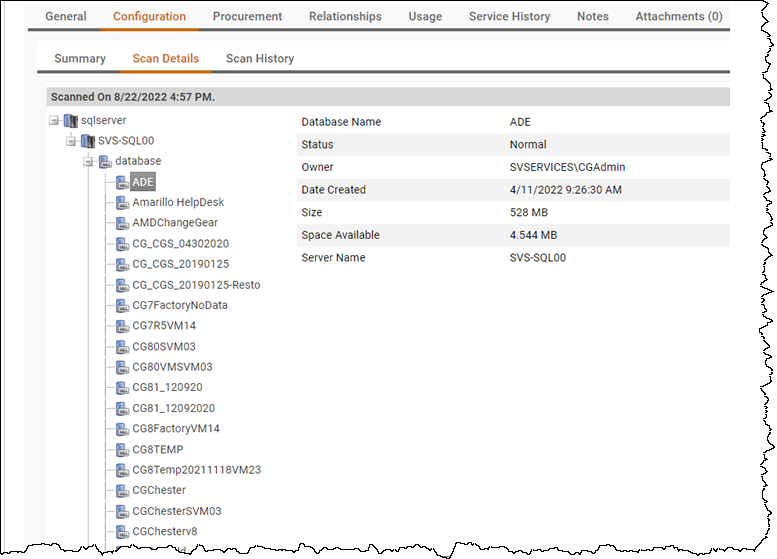 After the scan completes, the databases should appear as dependencies listed under the respective server.