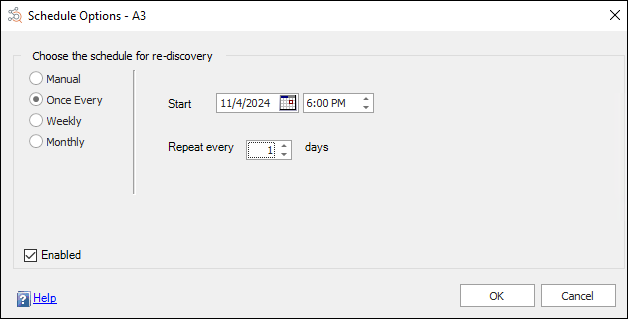 In addition to the initial network scan, you can discover new or changed resources continuously via manual or automated discovery. Automating discovery tasks allows you to scan your resources during non-peak hours, such as Saturday nights.