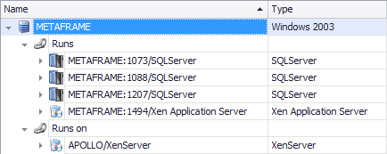 Services running on machines are treated as separate CIs that are children of the machine on which the service was discovered.