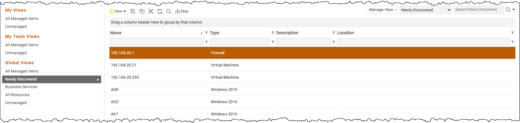 In the Views drop-down menu on the toolbar, select "Newly Discovered."